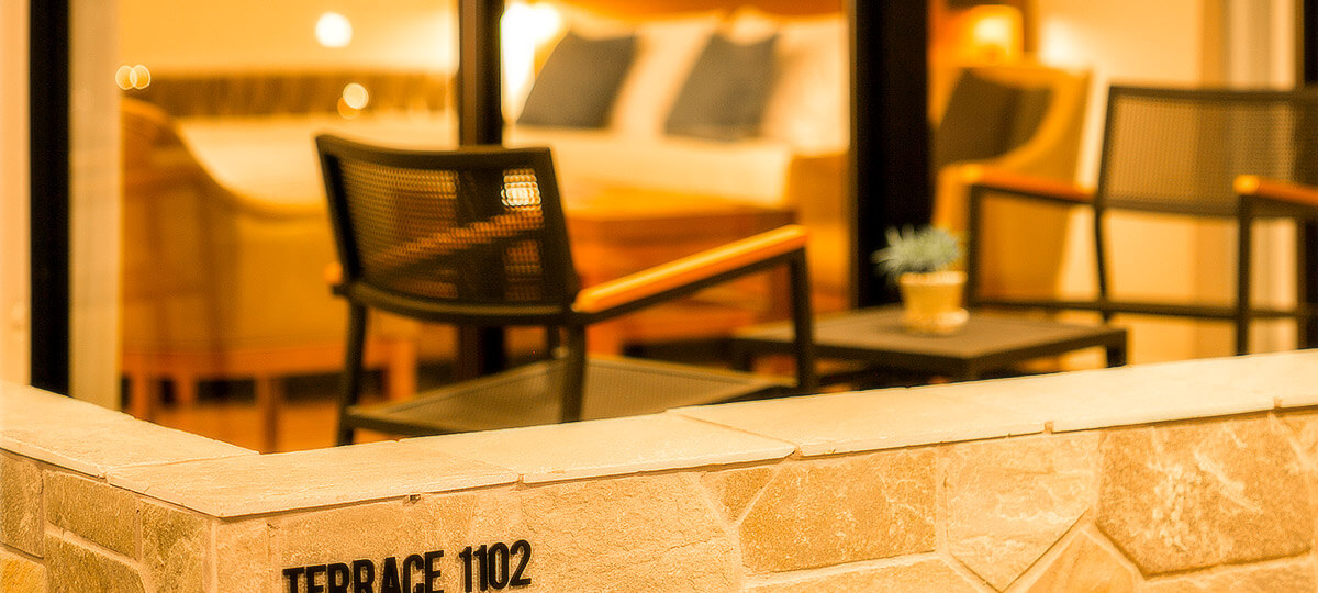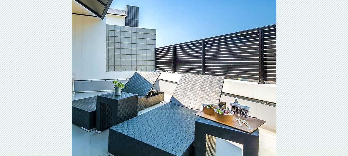 ノース1階パティオに面したバルコニーで、ゆったりとした時間をお過ごしください。